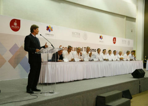 Acompañado del gobernador de Jalisco, Aristóteles Sandoval, el titular de la Sectur firmó convenios de colaboración con la Confederación de las Cámaras Industriales (Concamin) y con la Asociación Nacional de Cadenas de Hoteles (ANCH), Luis Eduardo Barrios, para encadenar el sector con proveeduría nacional y apoyar una industria turística más competitiva.