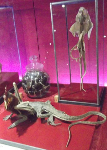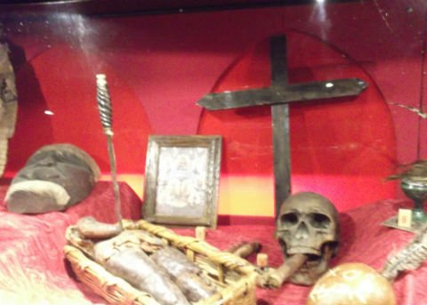 Extrañas formas de animales como una figura de mujer apostada en cuatro patas, objetos relacionados con la santería y el vudú, el cuerpo de un hada y una sirena, un vampiro, réplicas de reliquias santas; así como un segmento dedicado al sexo y los placeres como un consolador de manivela hecho de madera, figuras y libros de mujeres víctimas de diablos en plena orgía, sin faltar animales y aves con formas fálicas.