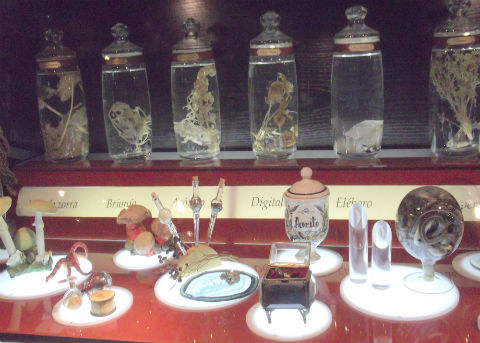 Algunas piezas son los clásicos ingredientes para elaborar las pociones mágicas como plantas venenosas, animales ponzoñosos, piel disecada de lombriz, mandrágoras y víboras hasta el mismísimo “libro de las invocaciones”.