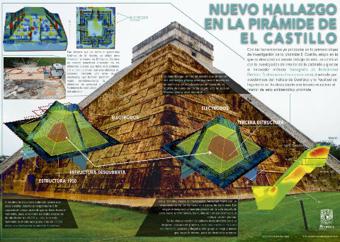 Científicos del Instituto de Geofísica (IGf), de la Facultad de Ingeniería (FI) de la UNAM y del Instituto Nacional de Antropología e Historia (INAH), descubrieron que en el interior de la pirámide de Kukulkán, en Chichén Itzá, existe una segunda subestructura (pirámide).