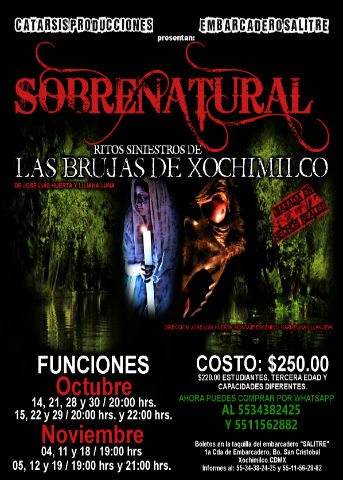 El próximo viernes 14 de Octubre en punto de las 7pm inicia la cuarta temporada de la puesta en escena “Sobrenatural” que se presentará en el Embarcadero “Salitre” del Barrio de San Cristóbal, Xochimilco.