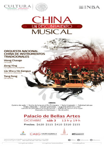 Es así que para cerrar con broche de oro todas estas actividades, llega a México, por vez primera, la que es considerada la organización musical más importante de China: la Orquesta Nacional China de Instrumentos Tradicionales, quienes ofrecerán en 4 conciertos el programa denominado: “China, un Descubrimiento Musical”.