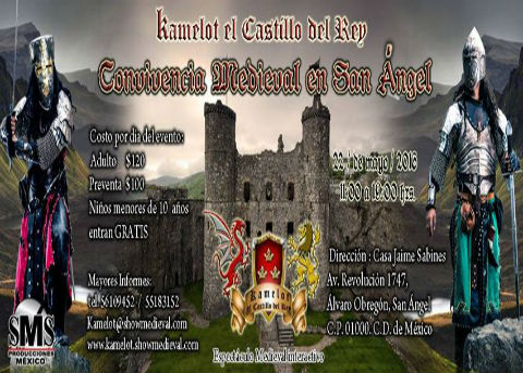Gánate uno de los 10 pases dobles para la 4º Convivencia Medieval de Kamelot el Castillo del Rey que se llevará a cabo el domingo 22 de Mayo de 11:00 a 19.00 horas en la Casa Jaime Sabines, únicamente solicita tus pases y envía tus datos a: [email protected] y sé uno de nuestros afortunados ganadores.