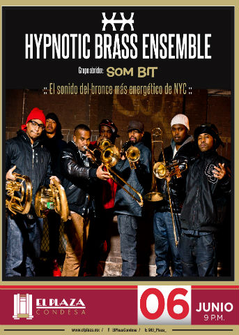 Con su más reciente material, “FLY”, han perfeccionado su fórmula, incrementando la velocidad, priorizando la pura emoción antes que cualquier otro lait motiv. Trompetas y trombones dibujan desarrollos que en ocasiones bordean el free con la vista puesta en la vanguardia de finales de los sesenta, pero ellos le añaden un alto grado de diversión, groove y frescura que les hace originales, innovadores, y accesibles a la par. Su composición tiene cierto aroma clásico, pero su manera de interpretarla es rabiosamente fresca. Haciendo sencillo lo complejo, y con gran fluidez, este fabuloso trabajo de Hypnotic Brass Ensemble se ha ganado merecidamente la presencia de los grandes escenarios. Para este concierto en El Plaza Condesa, compartirán escenario con la banda originaria de Cuernavaca, SOM BIT.